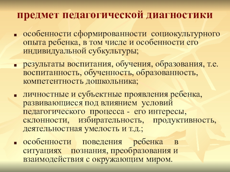 Слайд 4предмет педагогической диагностики
