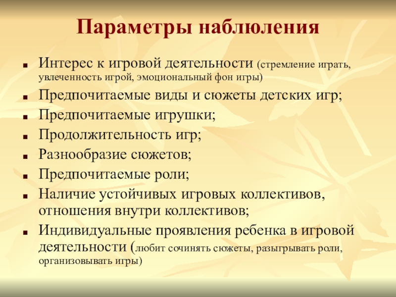 Интерес к игровой деятельности (стремление играть, увлеченность игрой, эмоциональный фон