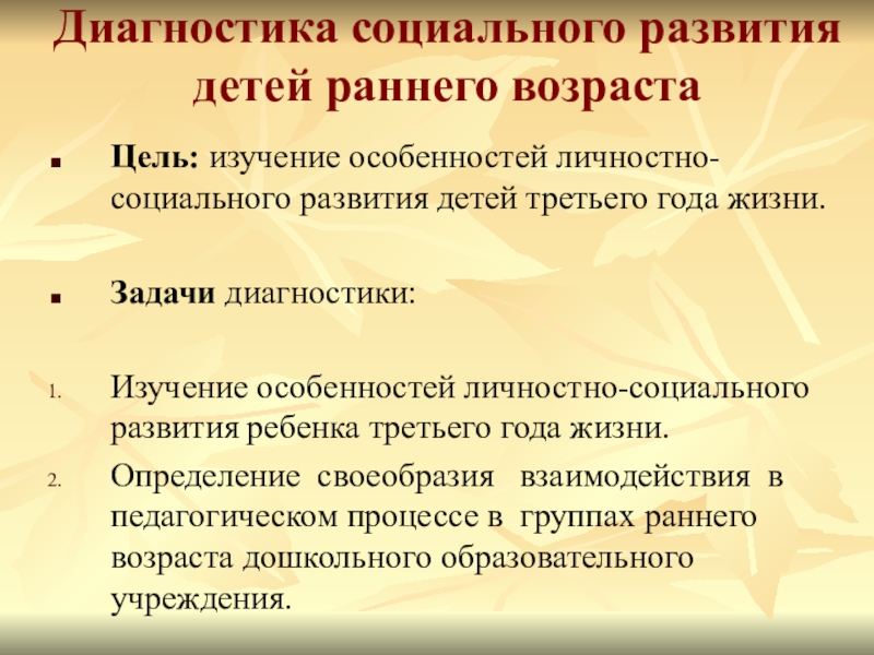 Слайд 15Диагностика социального развития детей раннего возраста