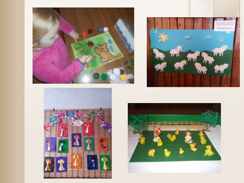 Аппликация: «Наседка с цыплятами», «Овечки на лугу».