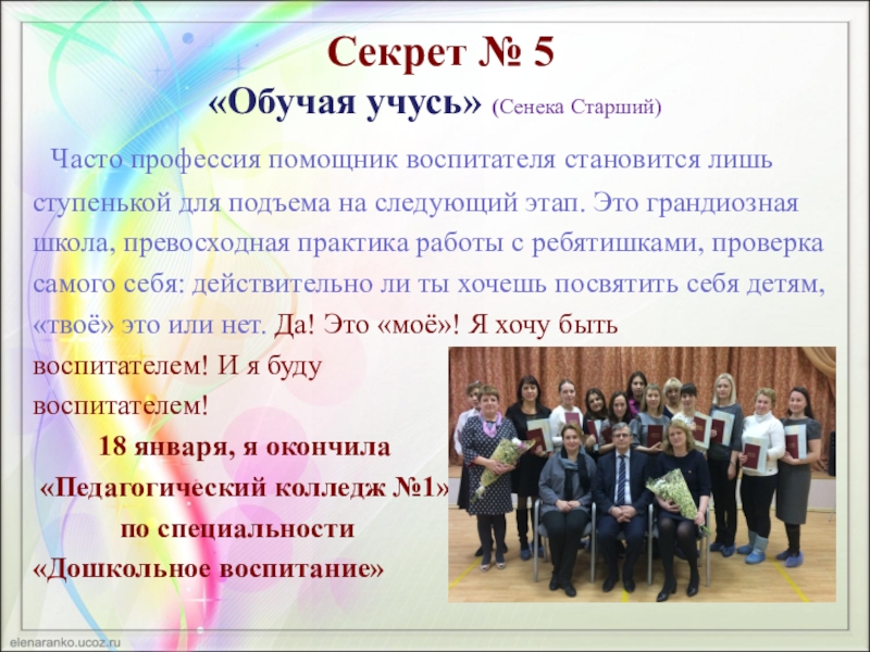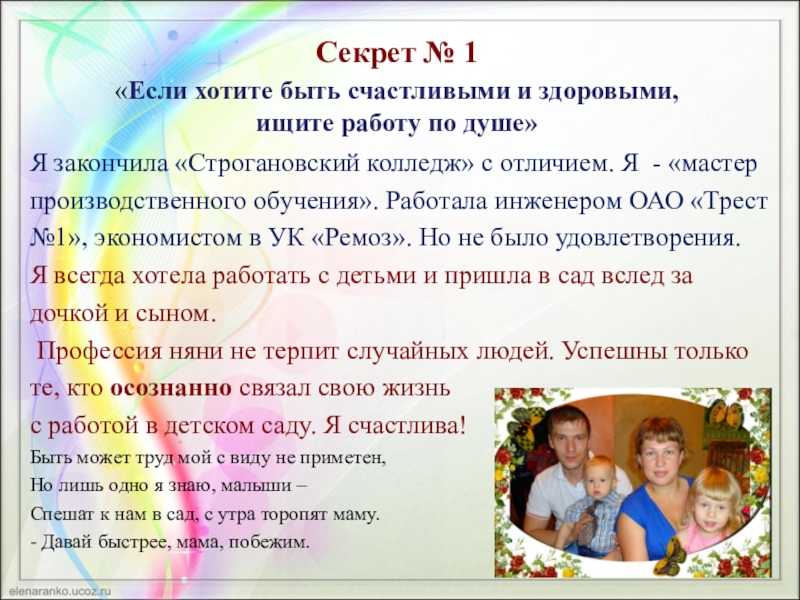 Я всегда хотела работать с детьми и пришла в сад вслед за