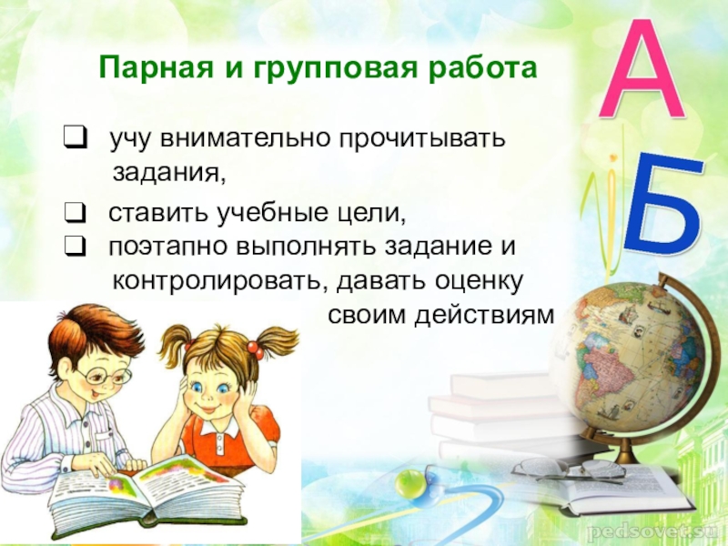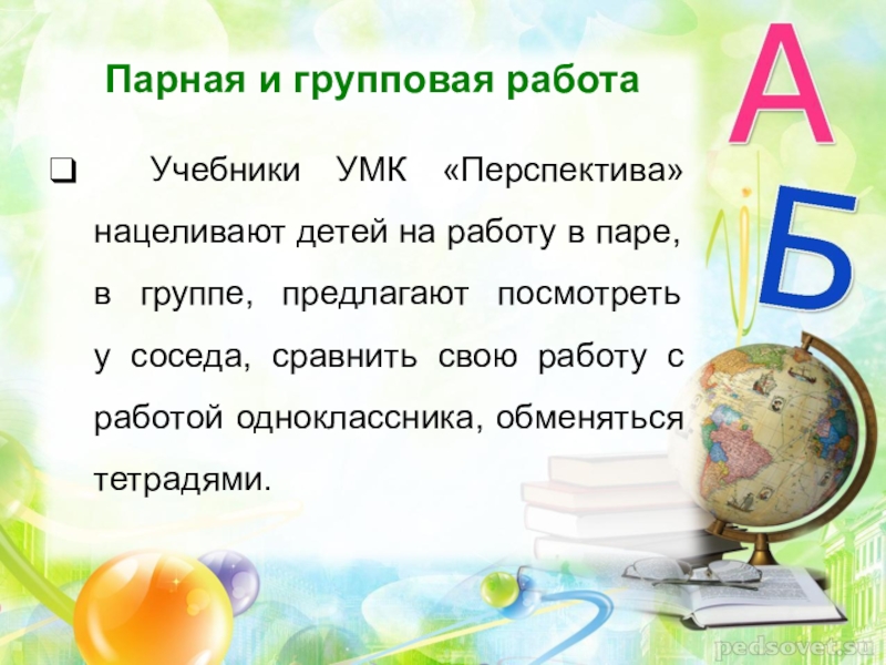 в паре, в группе, предлагают посмотреть у соседа, сравнить свою работу с работой одноклассника, обменяться тетрадями.