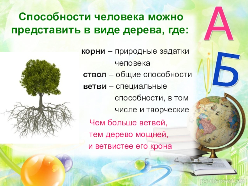 Слайд 2 Способности человека можно представить в виде дерева, где: