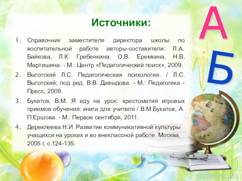 Дереклеева Н.И. Развитие коммуникативной культуры учащихся на уроках и во внеклассной работе. Москва, 2005 г, с.124-135.