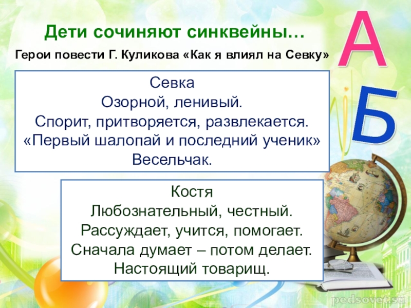 Герои повести Г. Куликова «Как я влиял на Севку»