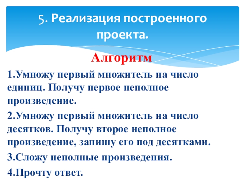 5. Реализация построенного проекта.