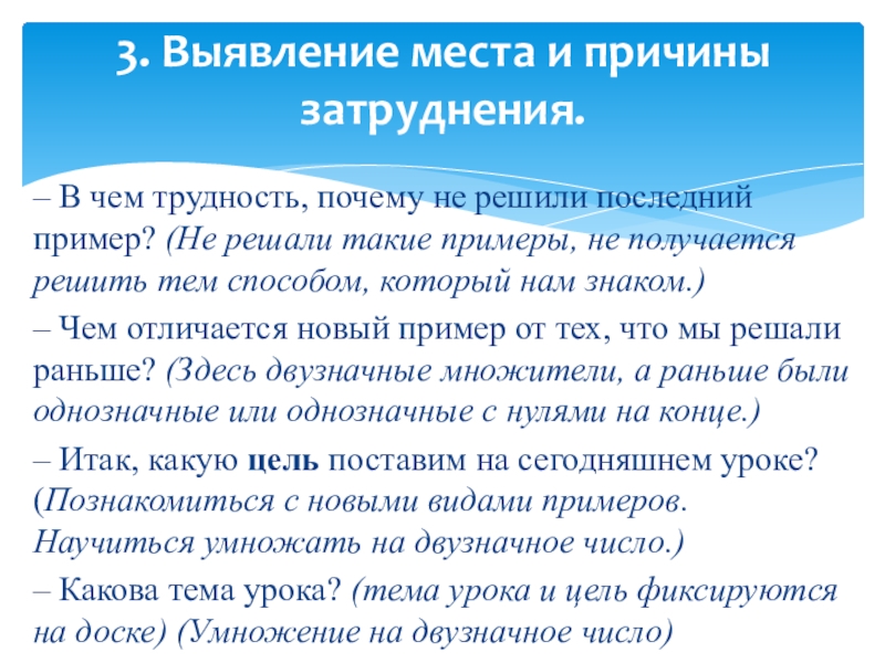 3. Выявление места и причины затруднения.