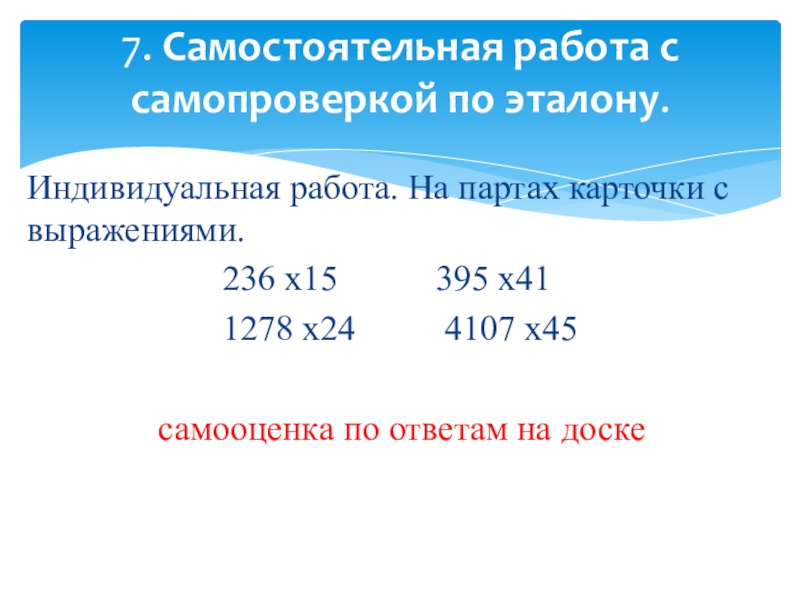 7. Самостоятельная работа с самопроверкой по эталону.