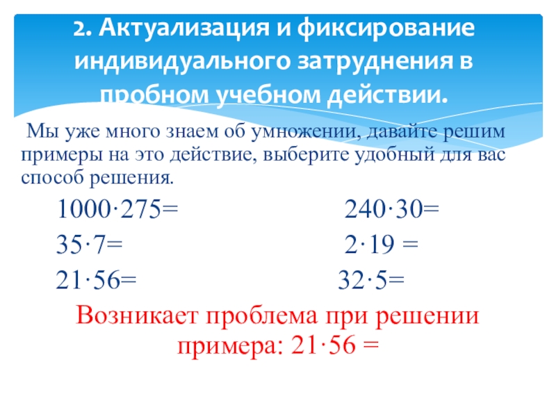 2. Актуализация и фиксирование индивидуального затруднения в пробном учебном действии.