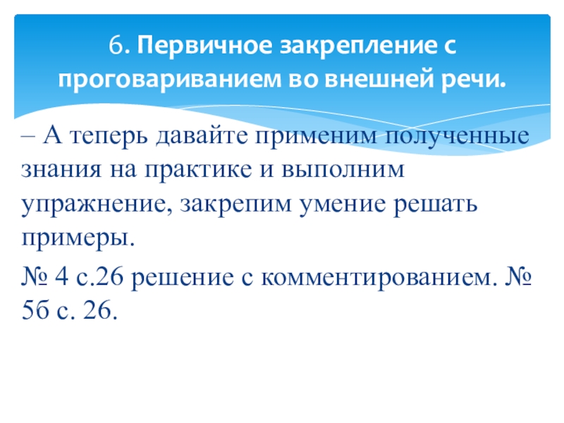 6. Первичное закрепление с проговариванием во внешней речи.