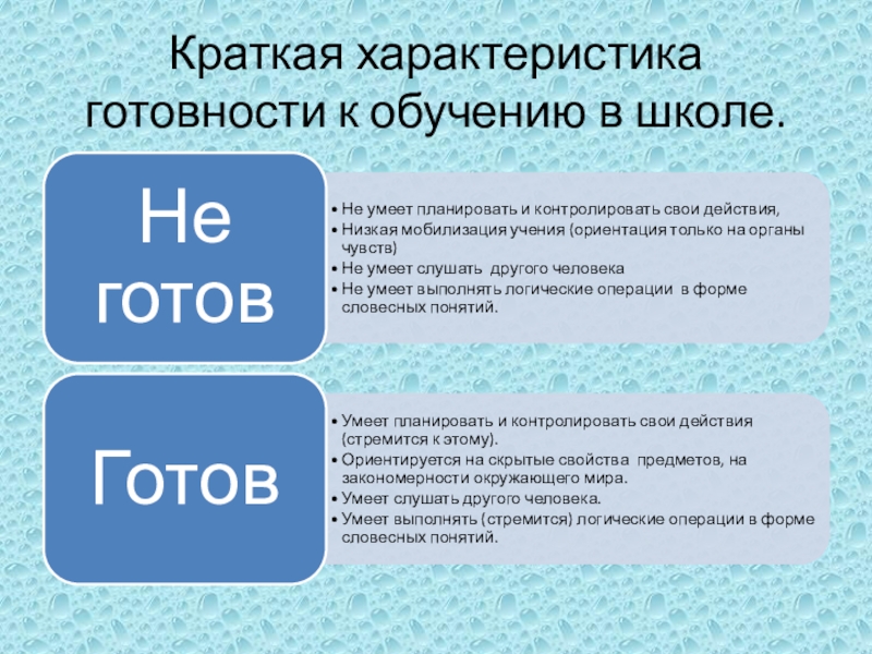 Слайд 8Краткая характеристика готовности к обучению в школе.