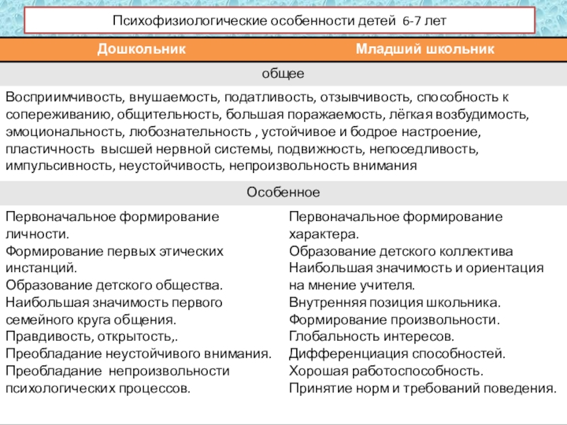 Слайд 6Психофизиологические особенности детей 6-7 лет