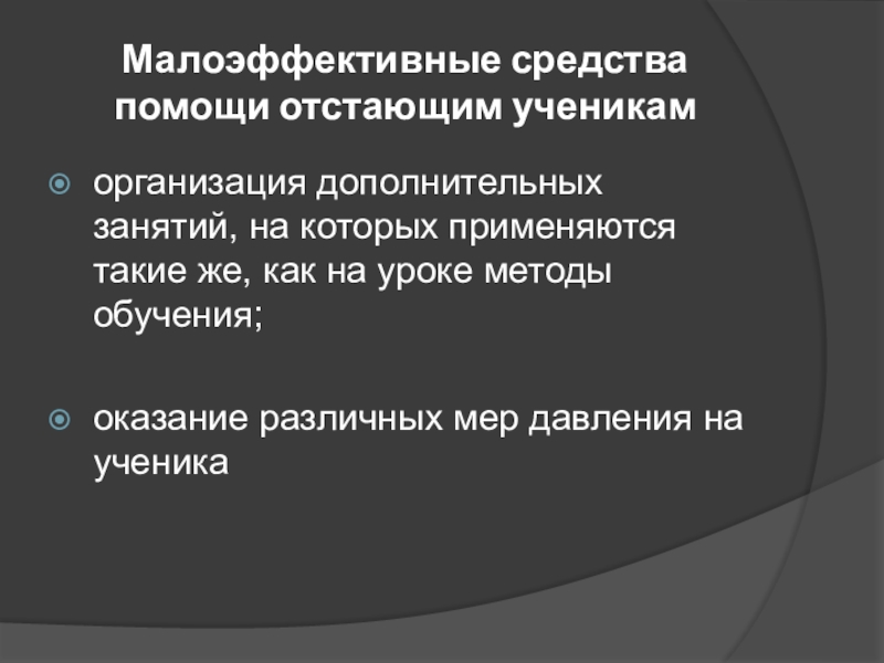 Слайд 13Малоэффективные средства помощи отстающим ученикам