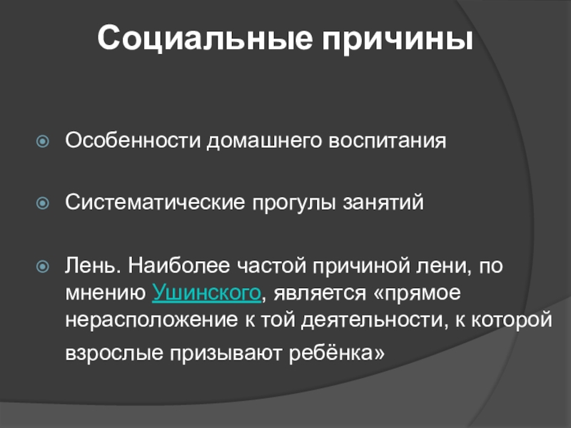 по мнению Ушинского, является «прямое нерасположение к той деятельности, к которой взрослые призывают ребёнка»