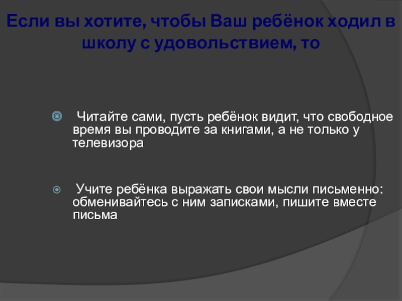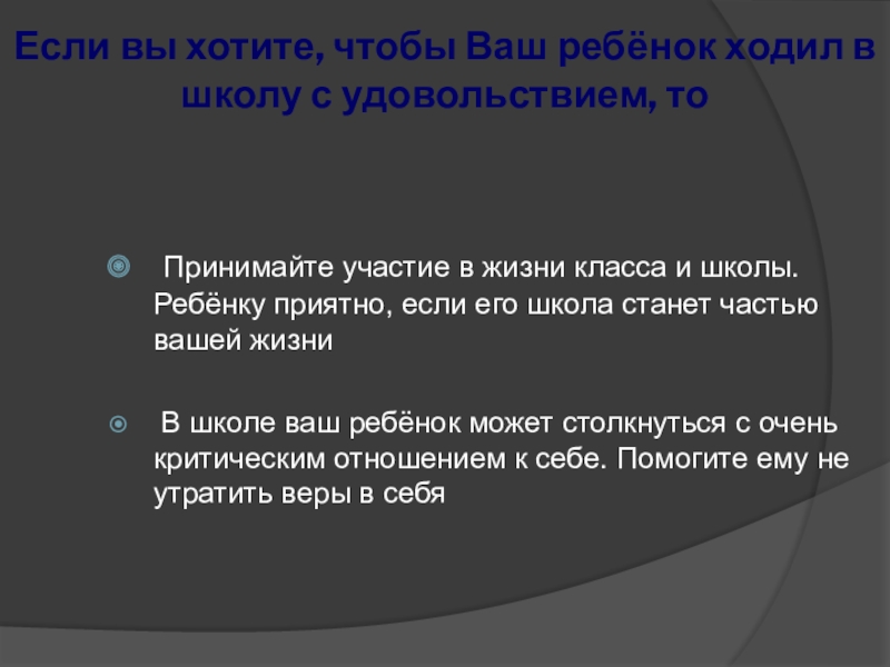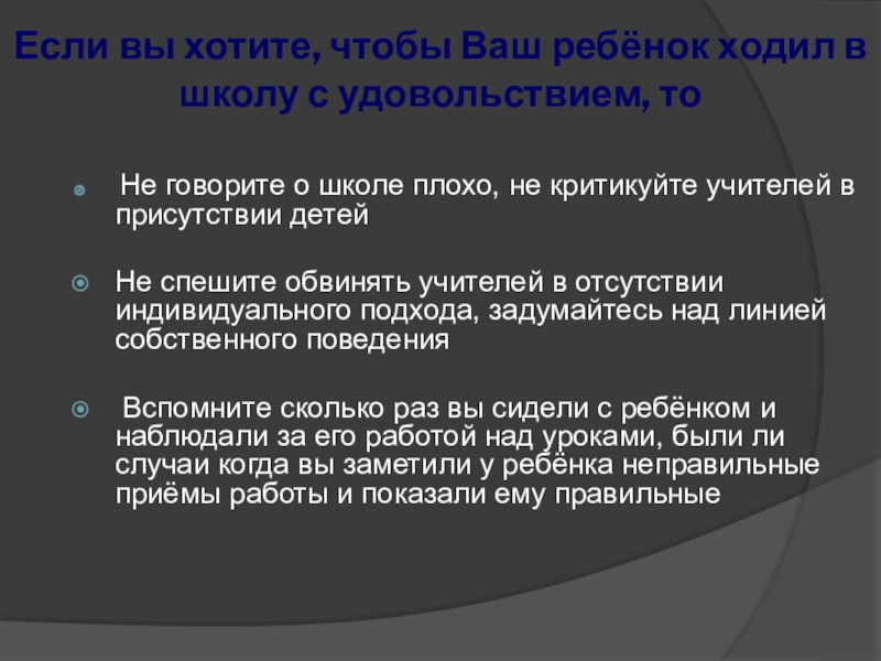 Слайд 25Если вы хотите, чтобы Ваш ребёнок ходил в школу с удовольствием,