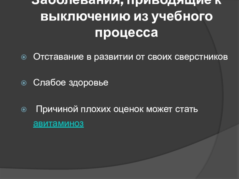 ЗАБОЛЕВАНИЯ, ПРИВОДЯЩИЕ К ВЫКЛЮЧЕНИЮ ИЗ УЧЕБНОГО ПРОЦЕССА