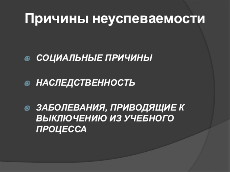 Слайд 1ПРИЧИНЫ СНИЖЕНИЯ УСПЕВАЕМОСТИ ШКОЛЬНИКОВ