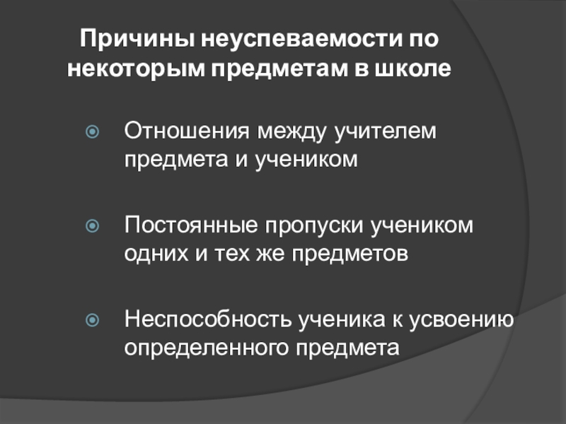 Слайд 17Причины неуспеваемости по некоторым предметам в школе