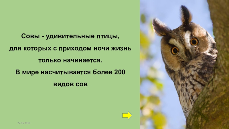 Презентация, доклад для занятий по ознакомлению с окружающим миром в разновозрастной группе ДОУ Сова-удивительная птица