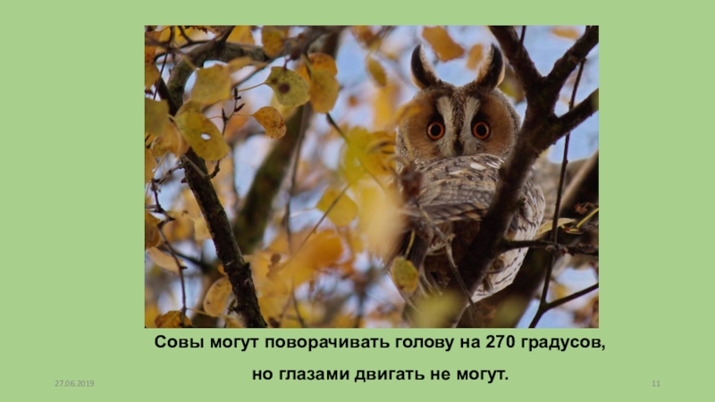 Слайд 11Совы могут поворачивать голову на 270 градусов,