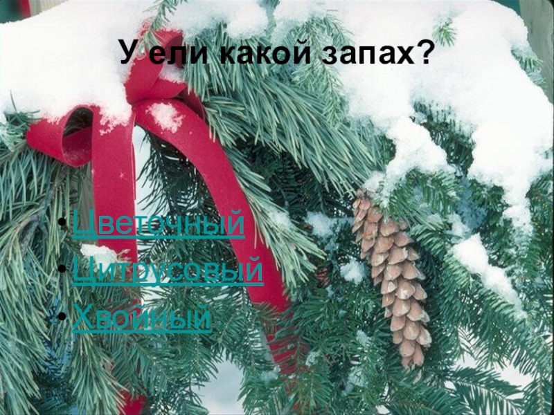 У ели какой запах?ЦветочныйЦитрусовыйХвойный