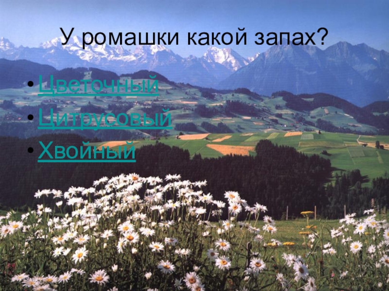 У ромашки какой запах?ЦветочныйЦитрусовыйХвойный