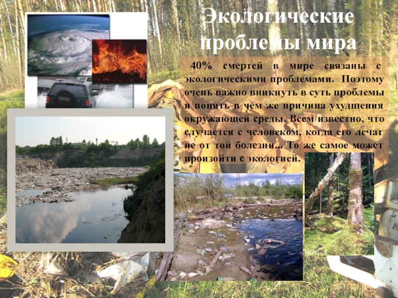 Слайд 7 40% смертей в мире связаны с экологическими проблемами. Поэтому очень