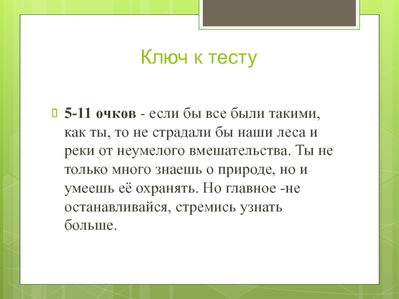 Слайд 2611-18 очков- ты, безусловно, много знаешь о природе и хотел бы