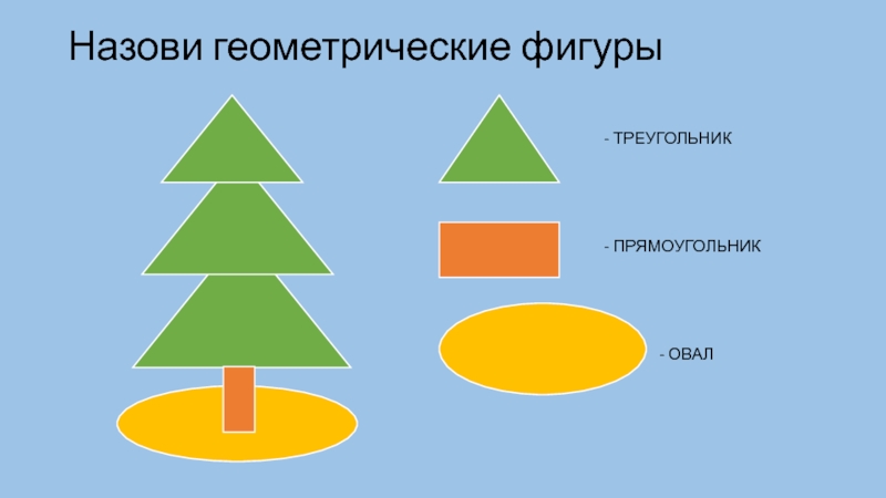 Назови геометрические фигуры- ТРЕУГОЛЬНИК- ПРЯМОУГОЛЬНИК- ОВАЛ