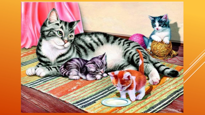 Презентация, доклад для занятия с детьми первой младшей группы Кошка с котятами