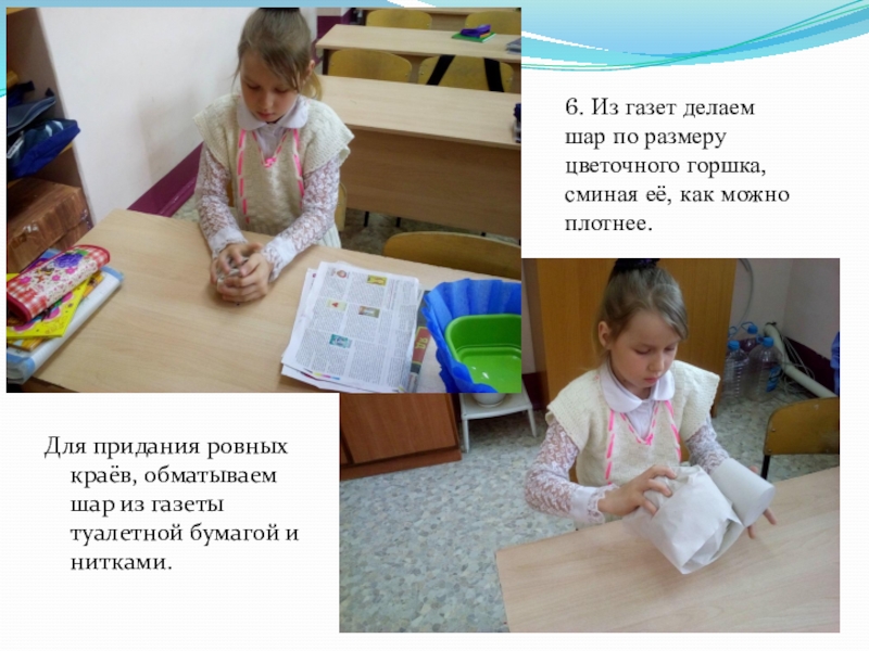 6. Из газет делаем шар по размеру цветочного горшка, сминая её, как можно плотнее.