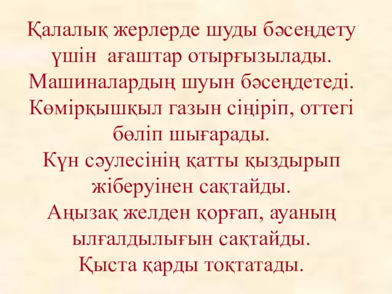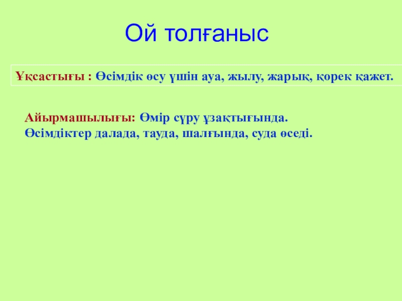 жаңбыр жауады. Жаңбыр суына шөлі қанған өсімдіктер мен құстар қуанады.