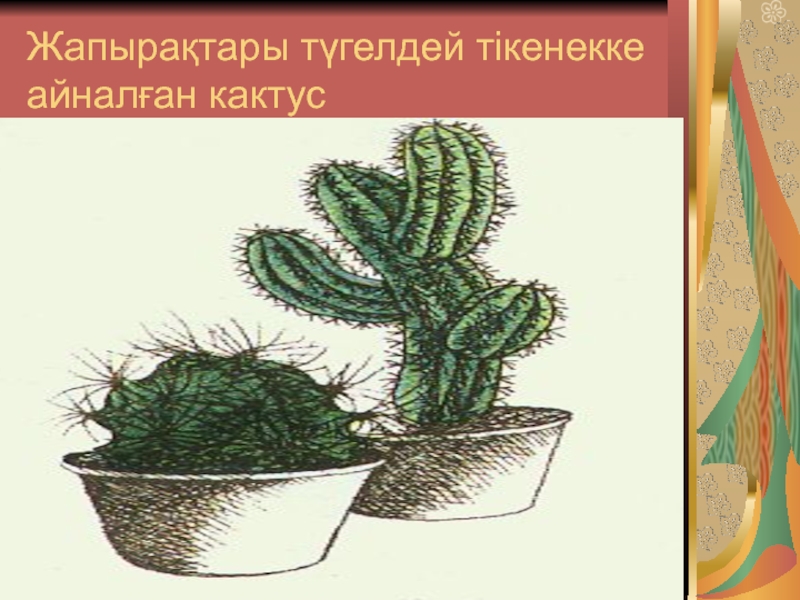 Слайд 5Жапырақтары түгелдей тікенекке айналған кактус