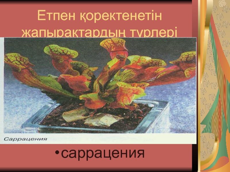 Слайд 7Етпен қоректенетін жапырақтардың түрлері