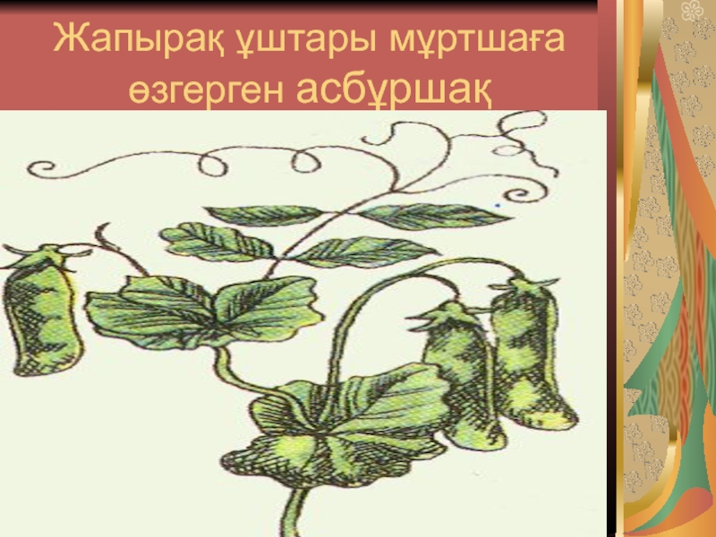 Слайд 6Жапырақ ұштары мұртшаға өзгерген асбұршақ