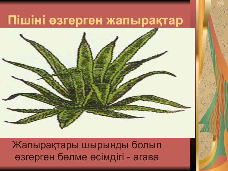 Пішіні өзгерген жапырақтарЖапырақтары шырынды болып өзгерген бөлме өсімдігі - агава