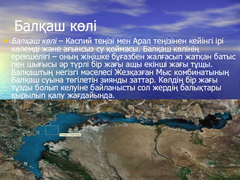 Балқаш көлі – Каспий теңізі мен Арал теңізінен кейінгі ірі