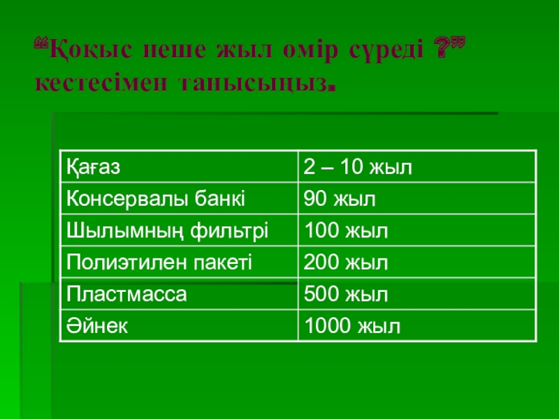 Слайд 20“Қоқыс неше жыл өмір сүреді ?” кестесімен танысыңыз.