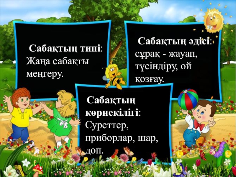 Сабақтың көрнекілігі: Суреттер, приборлар, шар, доп.