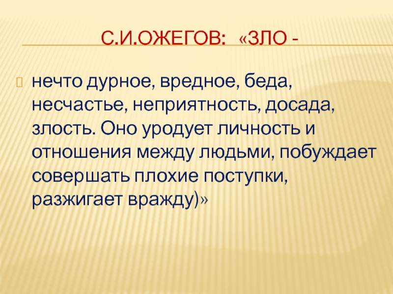 Слайд 11С.И.Ожегов: «Зло -