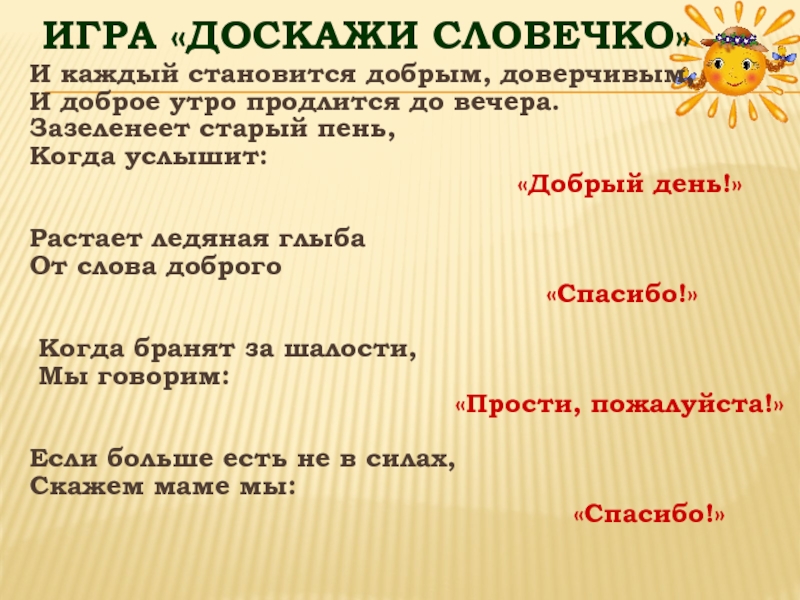 Слайд 21Игра «Доскажи словечко»