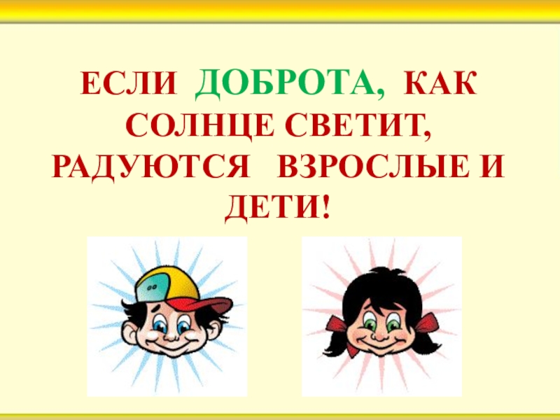 Слайд 5ЕСЛИ ДОБРОТА, КАК СОЛНЦЕ СВЕТИТ, РАДУЮТСЯ ВЗРОСЛЫЕ И ДЕТИ!