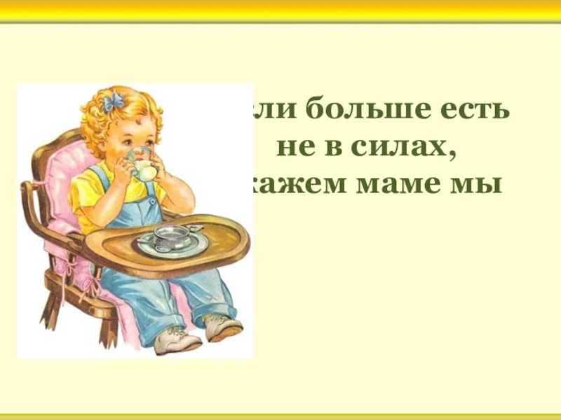 Слайд 13Если больше есть не в силах, скажем маме мы