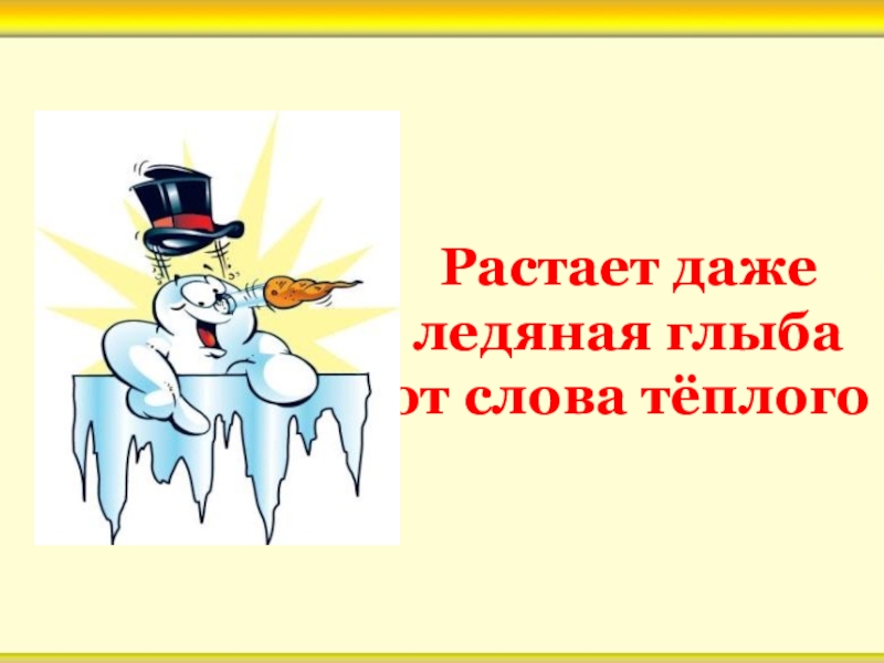 Слайд 9 Растает даже ледяная глыба от слова тёплого