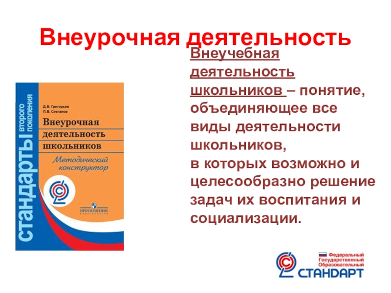 Внеучебная деятельность школьников – понятие, объединяющее все виды деятельности школьников,