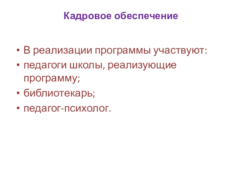 кадровое обеспечение программы;