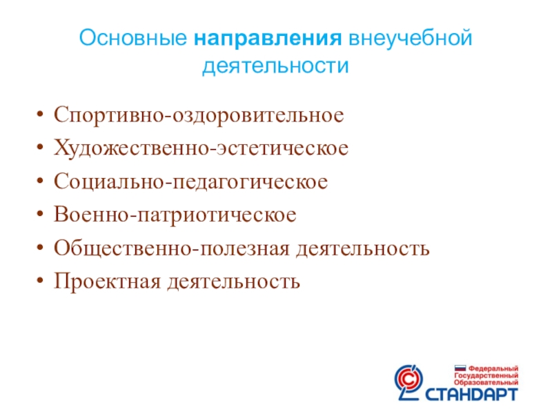 Слайд 19Основные направления внеучебной деятельности
