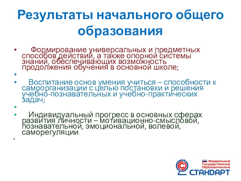 Слайд 41Результаты начального общего образования