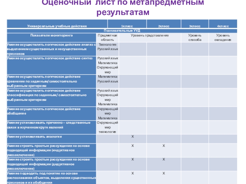 Слайд 12Оценочный лист по метапредметным результатам