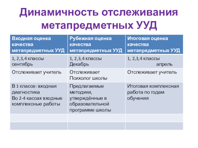 Слайд 8Динамичность отслеживания метапредметных УУД